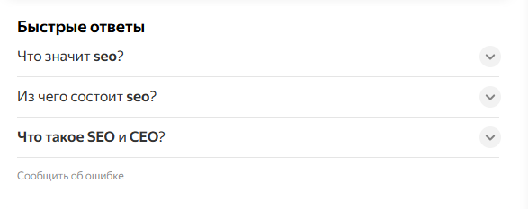 Примеры сниппета “быстрые ответы” в выдаче: