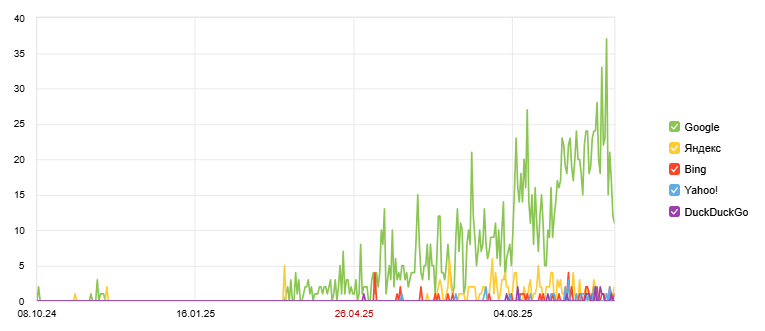 Проблема молодого домена: Основной вызов заключался в отсутствии авторитета у нового домена в высококонкурентной нише. Стандартные методы продвижения требовали бы 6-12 месяцев для достижения значимых результатов.
